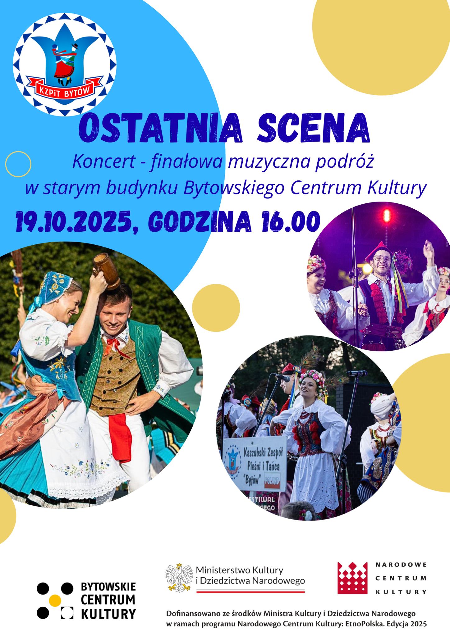 Bytowskie Centrum Kultury zaprasza na koncert Kaszubskiego Zespołu Pieśni i Tańca „Bytów” pt. Ostatnia scena w niedzielę, 19 października 2025 r. o godz. 16:00.